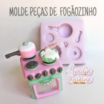 Esse molde permite montar um fogãozinho com biscuit em uma caixa acrílica 5x5 cm ou em um cubo com a mesma medida ou um pouco maior.